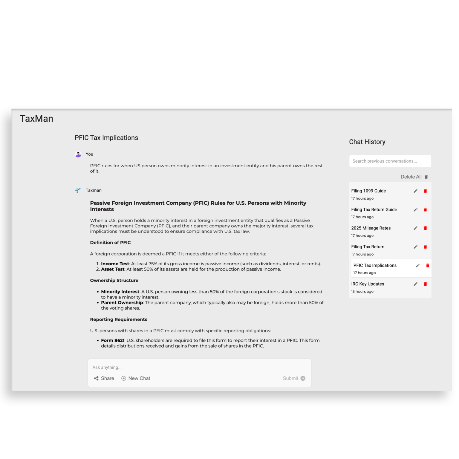 Taxman, your AI Assistant, is here to provide real-time answers to your tax questions. Simplify decision-making and save time with instant, reliable insights.