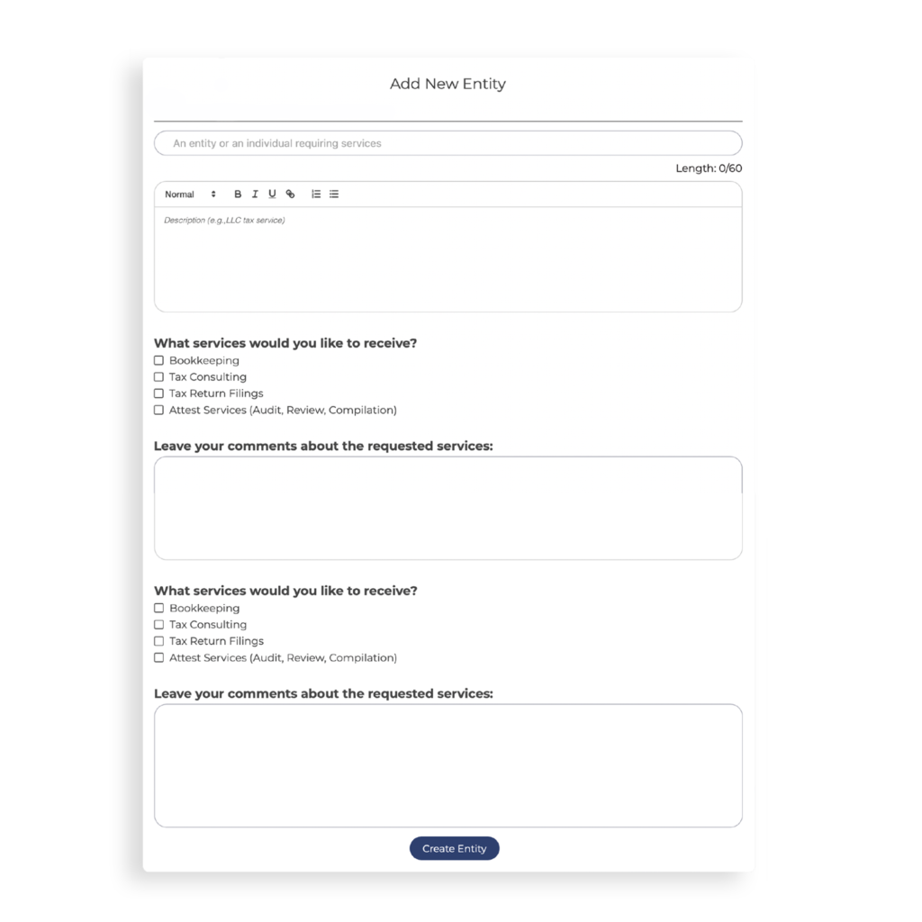 Eliminate the back-and-forth with clients by using our automated Onboarding Link. Simplify initial client contact, save time, and ensure every client is set up accurately from the start.